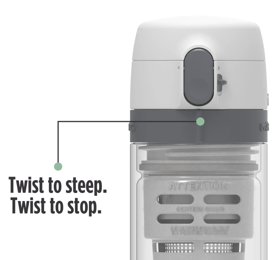 Our patented infuser basket with SteepStop-ReSteep® Technology can be opened and closed by turning a ring on the outside of the bottle. No mess, no stress. Just perfect flavor, bitter free.